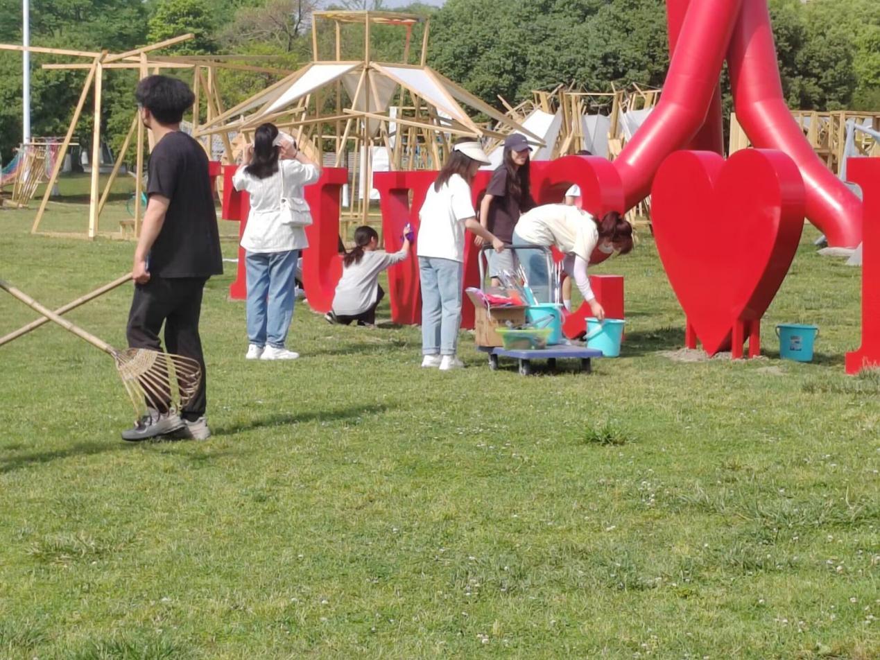 (志愿者们清理雕像)