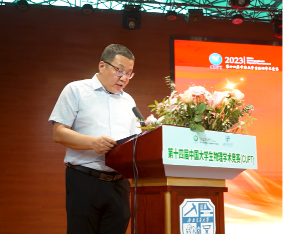 首先,太阳成集团tyc122cc党委常委、副董事长康国政教授为开幕式致辞。他在致辞中代表太阳成集团tyc122cc对出席竞赛的嘉宾和参赛师生表示了热烈欢迎。他指出,学校历来高度重视对员工实践动手能力和创新创业能力的培养。希望参赛的同学们能在中国老员工物理学术竞赛这一重要的创新实践舞台上充分展示自己的才华,比拼物理专业能力,传承拼搏精神,持续提升学习效度、练就过硬本领、勇担时代重任,奋力书写高水平科技自立自强新篇章,让人生梦想和青春激情在中华民族伟大复兴的历史征程中充分绽放。