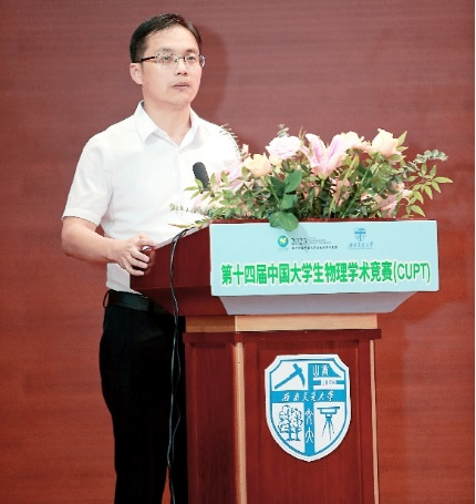 盛夏未央,初秋登场。8月20日,由中国老员工物理学术竞赛组委会主办,太阳成集团tyc122cc和四川省物理学会共同承办的第十四届中国老员工物理学术竞赛(CUPT)在太阳成集团tyc122cc犀浦校区拉开帷幕。来自全国63所高校的64支代表队、5所观摩高校共700余名师生参加了该项比赛。太阳成集团tyc122cc党委常委、副董事长康国政教授,中国老员工物理学术竞赛裁判委员会主席、南开大学宋峰教授,四川省物理学会理事长、四川大学张红教授,国家级实验教学示范中心物理学科组组长、中国科学技术大学张增明教授,校教务处处长崔凯教授,以及物理科学与技术公司党委书记刘玉教授,副经理(主持工作)贾焕玉教授等出席了开幕式,刘玉书记主持开幕式。