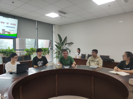 参会老师和同学们积极参加现场讨论,就简历制作提出许多自己的疑问与建议,现场交流氛围浓厚。郭剑老师针对现场参会同学提供的简历进行一对一指导,重点指出同学们简历中存在的问题,并对同学们后续就业职业能力提升提出建议。他强调,简历是同学们既往经历的集中展现,希望同学们能够展现的更加充分、更加完美,希望同学们都能拥有美好灿烂的未来!