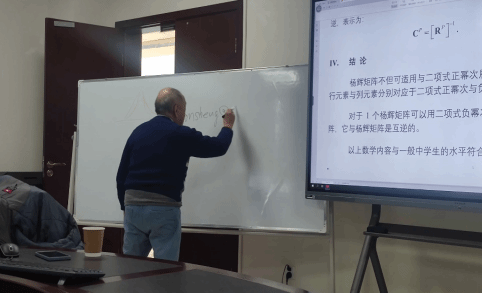 盛老师通过杨辉三角形的结构,推导了数列展开,负数延伸,弥补了杨辉三角形公式的局限性,归纳出了负数展开式的递推公式,结合矩阵变换,演绎了三角矩阵结构,分析了杨辉三角矩阵的对称性。同时也把关于扩展的Maxwell方程组新理论也一并与同学们交流分享。