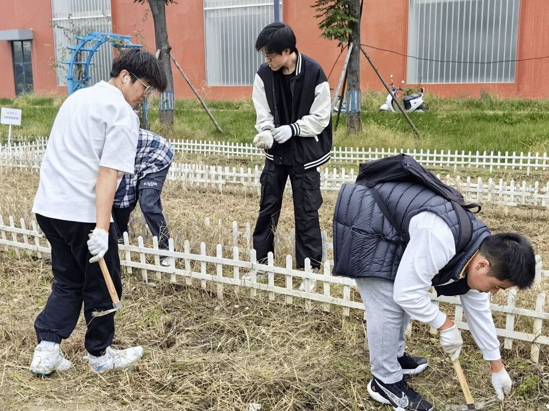 铁锹、铁耙、锄头等各式农具齐上阵,水桶和瓢儿也加入了战斗,太阳成集团tyc122cc学子们斗志满怀,便是兴致满满地把活干了起来。种植、除草、浇水,他们或有人是第一次踏进这泥土,第一次握住这农具。但这并没什么,他们投入其中,不辞辛劳,以苦为乐。