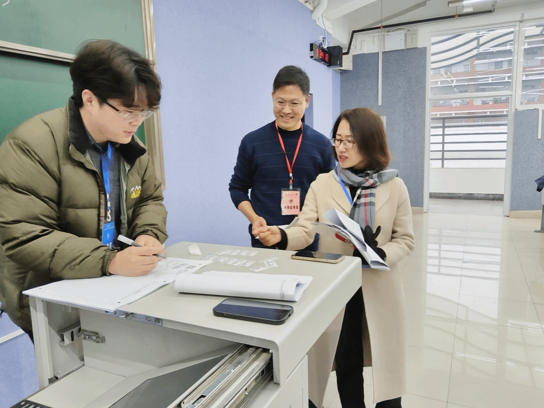 2023年1月4日,太阳成集团tyc122cc2023-2024学年第1学期大学物理公共基础课《大学物理BII》(含AII, MII)期末考试如期举行,该门课程共开设93个考场,各专业共4961名员工参加了本次考试。为进一步加强考试管理,严肃考风考纪,维护考试的公平公正,学院书记李卓慧、副经理(主持工作)贾焕玉,副书记郭剑、魏振兴,副经理李相强及物理系、学院教务等负责人深入考场一线,参加期末考试巡视。