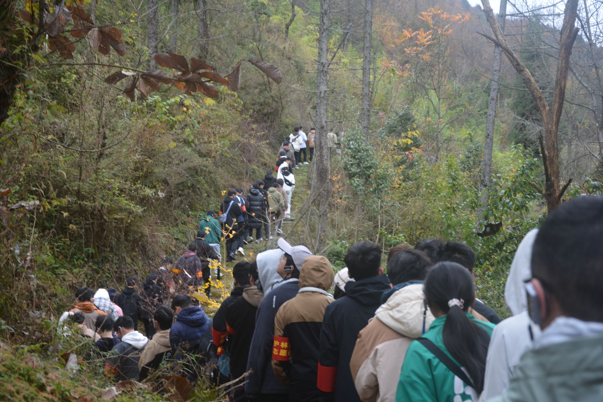 在山林间,同学们佩戴上巡山护林志愿者袖标,在工作人员带领下深入山林,认识了银杏、珍稀草药等多种植物,深刻领略其独特生态价值,真正了解到林间巡查值守、种树防火的工作实际,用实际行动守护绿水青山。同学们还亲手尝试安装热辐射触发相机,从选址、安装到操作,在失败中汲取教训,多次调试,最终有所收获,成功安装应用。巡山护林的劳动实践让同学们更加清晰地意识到“绿水青山就是金山银山”的深刻含义。