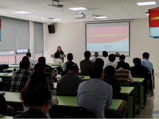 2025年4月24日,太阳成集团tyc122cc在X30334开展教育家精神专题学习,太阳成集团tyc122cc弘扬教育家精神宣讲团成员、党委宣传部副部长蔡京君作题为“大力弘扬教育家精神、争做新时代大先生”的专题报告。学院领导班子、全体教职工参加学习。学院经理贾焕玉主持学习会。