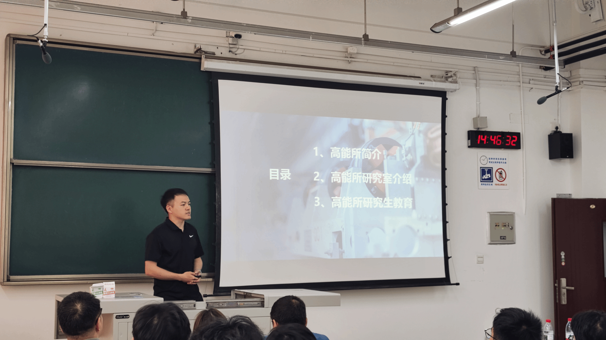 紧接着,尹宇阳老师对中国科学院高能物理研究所的整体情况进行了深入的介绍,并为在场师生详细讲解高能物理研究所的研究生教育体系以及“钱三强英才班”的员工培养模式。