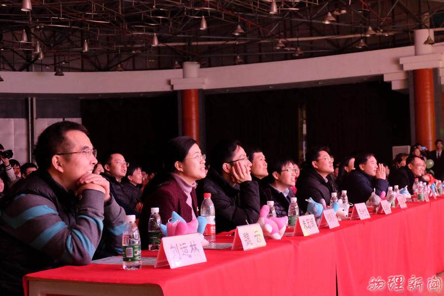 晚会中旬,迎来了大家共同期待的抽奖环节,将晚会推向了高潮,同学们积极参加,会场气氛热烈。与此同时,晚会还展示了由应用物理系和电子信息科学与技术系的老师发来的视频,表达着老师对同学们的问候与祝福。
