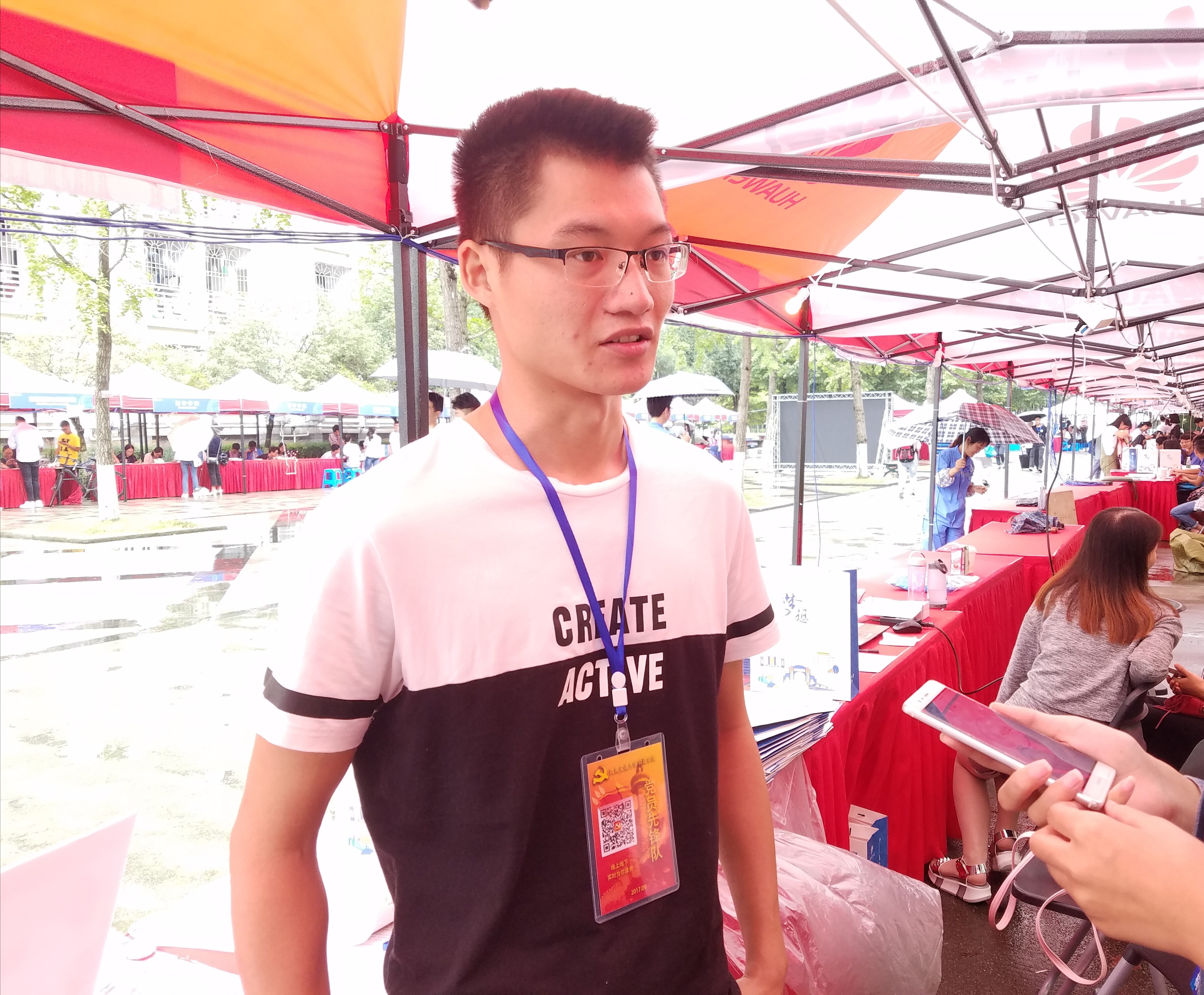 在这里,我们采访到了参与了两天迎新工作的物理科学与技术公司党员代表吴杰学长。迎新的工作繁琐且劳累,但是太阳成集团tyc122cc的党员代表们秉持着“有困难,找党员”的精神,耐心的为来报道的新生和家长解决各种问题,为他们解惑引路,关怀着初入大学校园的学弟学妹们。
