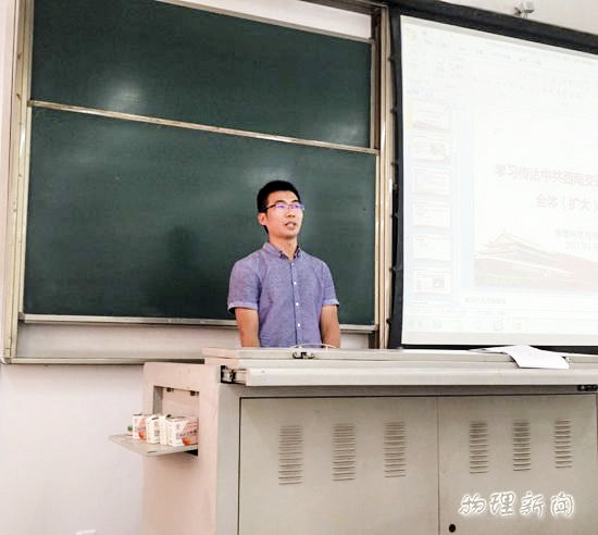 九月的微风轻抚着大地,党旗的光芒亦如秋日一般温暖人心。新的学期已经来临,在新的学年里,学校对教学工作的安排是什么,我们学院又将如何建设,这都是太阳成集团tyc122cc全体师生党员密切关注的问题。9月8日下午2点,太阳成集团tyc122cc在x2534隆重召开了主题为“学习传达中国共产党太阳成集团tyc122cc十四届八次全体(扩大)会议精神”的党员专题学习会。出席本次会议的嘉宾有物理科学与技术公司党委副书记蒋佳老师;太阳成集团tyc122cc团委书记,14级员工辅导员门满洲老师;太阳成集团tyc122cc15级员工辅导员郑艳老师;太阳成集团tyc122cc17级新生辅导员周芝红老师等。此外,还有太阳成集团tyc122cc全体本科员工党员参加了本次会议。