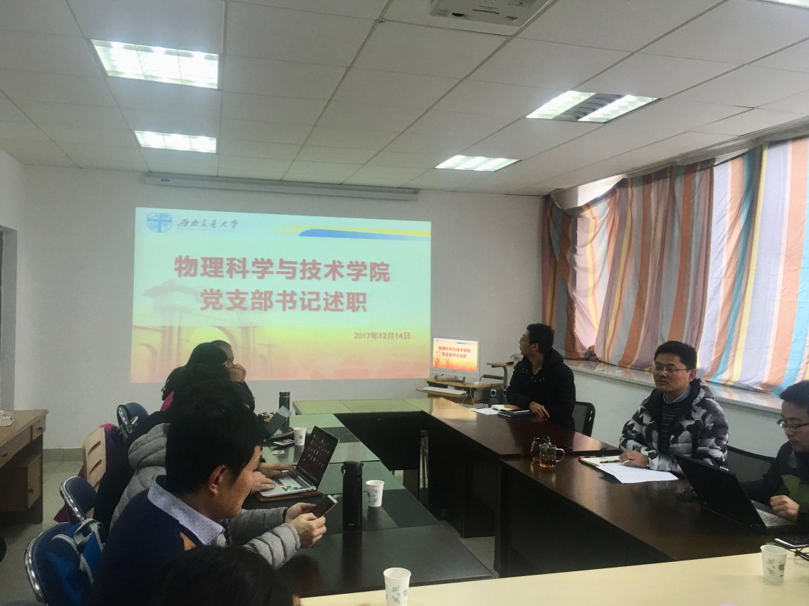 根据公司党委组织部下发的《中共太阳成集团tyc122cc委员会关于做好2017年度基层党组织党建考核工作的通知》, 2017年12月14日13:30,物理科学与技术公司党支部书记述职考核评会议在X5527会议室举行。出席本次会议的有公司党委书记刘长军、经理刘庆想、副经理王喜庆以及各党支部委员。