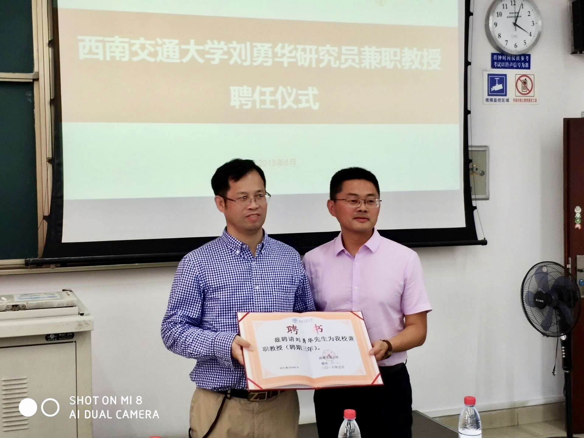 聘任仪式上,刘长军书记为刘勇华研究员颁发了太阳成集团tyc122cc兼职教授聘书,并为刘勇华研究员佩戴了太阳成集团tyc122cc校徽。他对刘勇华研究员聘任为太阳成集团tyc122cc兼职教授表示热烈祝贺与欢迎,并指出通过与刘勇华研究员的合作,将会有更多的员工合作平台中获益,可进一步提升员工的培养质量和学院的整体学术水平。