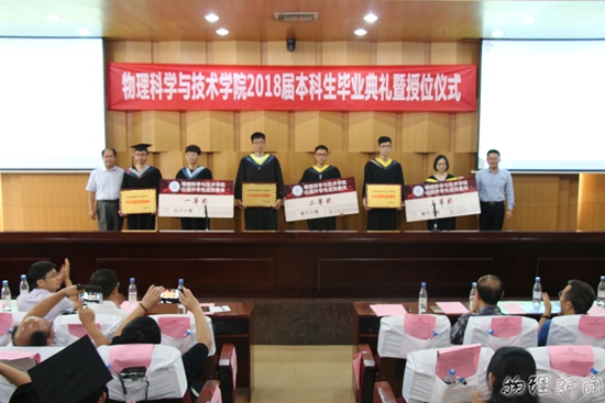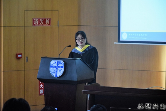 随后刘庆想经理也对18届毕业生在升学就业方面的卓越表现提出了表扬,并鼓舞大家不要放弃梦想,就业或许是一种选择,但是大家更应该以继续深造作为目标去努力,好好思考升学就业的问题,不要急于就业,争取能够更进一步地提高自己的能力,为社会做贡献。接下来,2018届本科毕业生代表张颖、汤桦、何磊上台发言。就像张颖同学说的那样:“这些所有的过往皆为序章,在交大这一站,收获的,享受的,体会的,都将陪伴着我们远行。在交大物院的这段青春将成为我们生命中最为珍贵的收藏,以后我们不管在哪里,做什么都不要忘记这四年。”