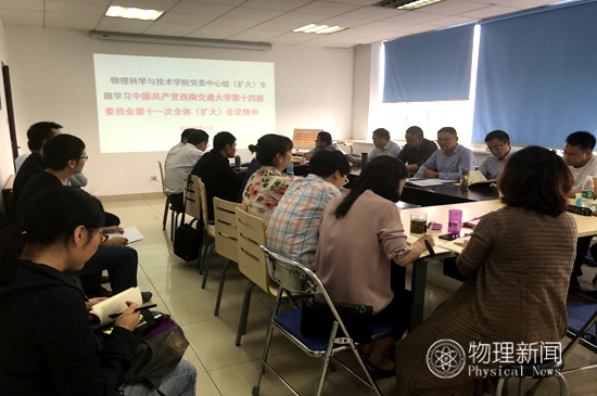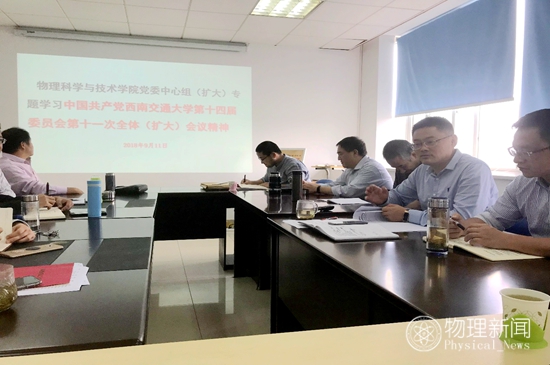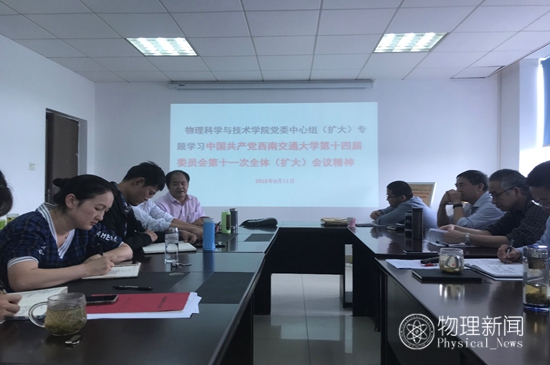 物理科学与技术公司党委于2018年9月11日下午2:30在犀浦校区5527会议室召开党委中心组学习(扩大)会议,专题传达学习学校第十四届委员会第十一次全体(扩大)会议暨新学期工作部署会精神,并对本学期学院的重点工作进行部署。学院全体党政领导班子成员、党委委员、各办公室主任等参加了本次会议。会议由公司党委书记刘长军主持。
