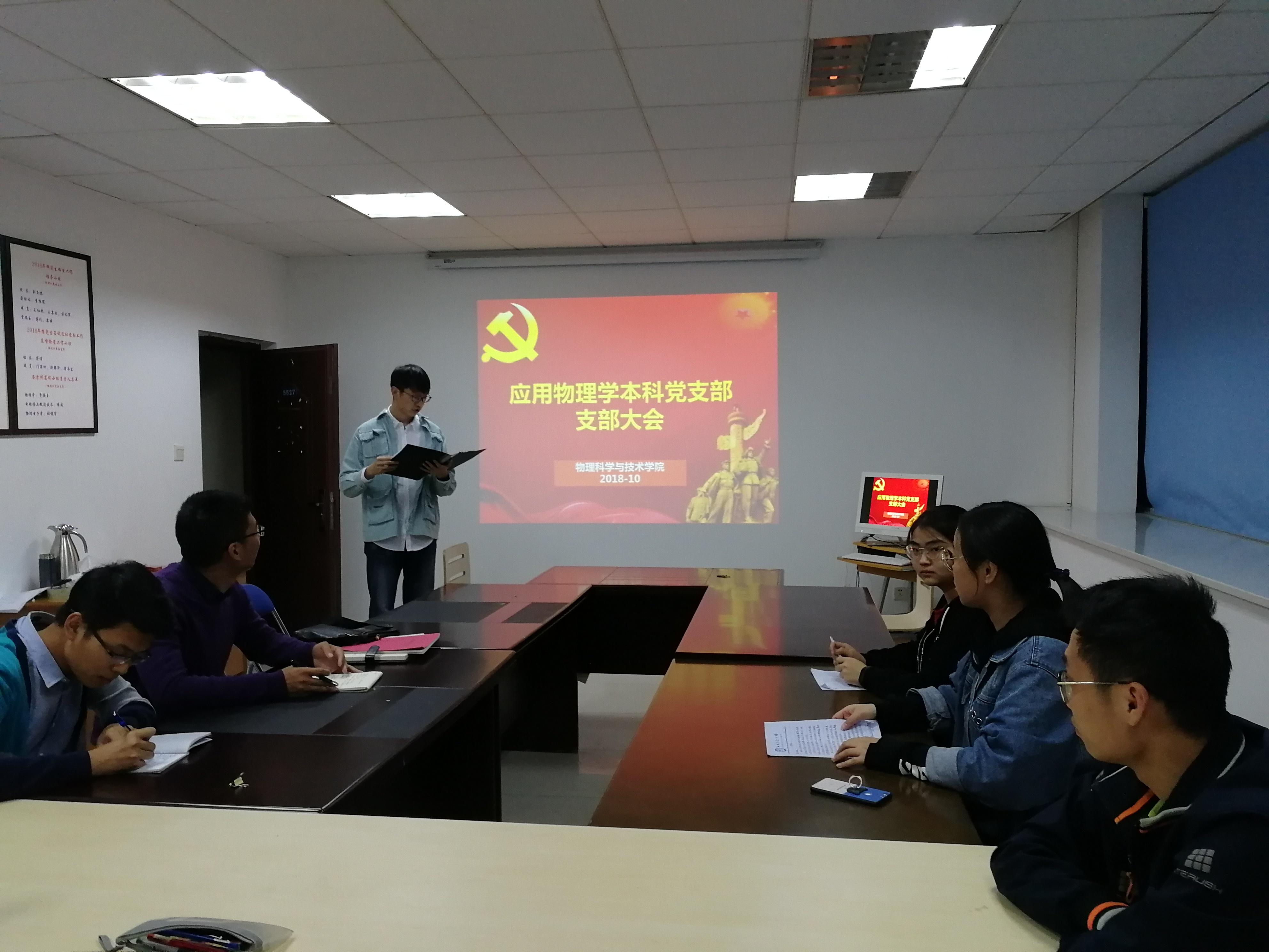 为响应公司党委关于加强太阳成集团tyc122cc基层党支部建设的号召,10月9日晚上19:30,本科应用物理学党支部在X5527召开支部党员大会。支部书记门满洲同志、宣传委员吴杰同志、组织委员辛钊同志、各预备党员与党员发展对象参加了本次会议。会议由组织委员辛钊同志主持。