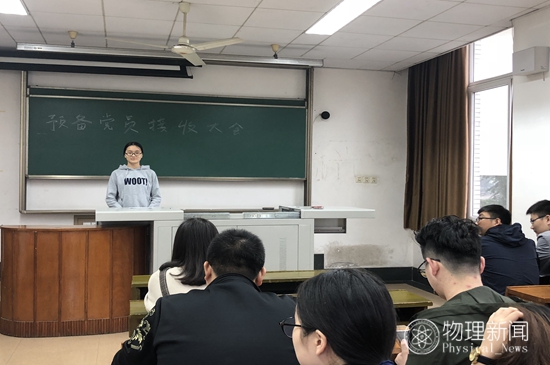 之后入党介绍人何亚丽同志介绍申请人徐敏同志的情况,与会党员同志对申请人是否符合党员条件发表意见,随后,支部党员进行表决,最后在十票赞成、零票反对、零票弃权的表决结果下,同意接受徐敏同志为中共预备党员。在接收仪式最后,支部全体党员同志一同重温入党誓词。