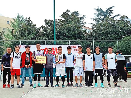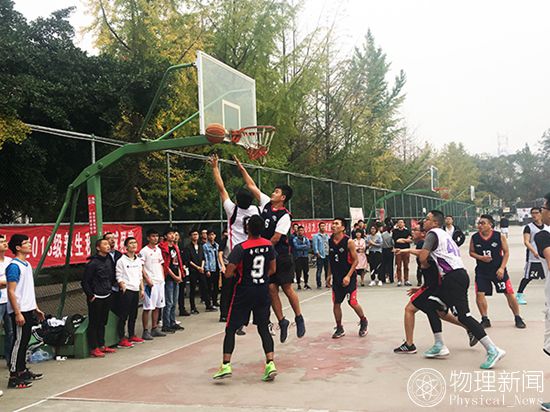 在比赛开始前,双方队员都积极的进行着热身运动和投篮训练,全场上下萦绕着紧张而又活跃的气氛。12时30分,随着裁判员的一声哨响,比赛开始,整个球场顿时激烈了起来。双方队员奋勇拼搏,发球、传球、运球、投球,两队棋逢对手,你来我往。牵引二队率先发难,其9号球员发挥出色,连续投进3个3分球,使牵引二队在上半场结束时领先物理一队1分。在下半场的比赛中,面对比分落后,物理一队不畏压力:队长华颖鑫及时调整了自己的战术部署,带头冲锋,连连抢攻;其余队员配合推进,节奏行云流水。物理全队气势如虹,逐步将整个局面翻转了过来。随着比赛结束的哨声响起,比分停在了45:40。物理一队最终领先五分战胜了牵引二队,夺得了此次的“世茂杯”的冠军!