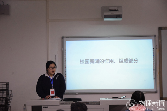 培训开始,首先进行的是新闻稿写作的培训。潘晓颖部长首先阐述了校园新闻的价值和意义,着重提醒大家要注意新闻的三要素,即有效性、真实性、可读性。接下来潘晓颖部长向大家介绍了新闻的组成部分:标题+导语+主体+结尾,并详细分析每一部分并列举出许多正反例子供大家参考,譬如在写标题时,切忌文艺色彩过于浓厚以至于让人不能明白这篇新闻到底要讲什么,相反一些标题虽然直白短小,但却简明扼要,让人一眼就能抓住新闻的主要内容。这些例子让在场参加培训的成员有了更直观的认识。另外,潘晓颖部长也分享了一些写作技巧,如动词巧用、形容词慎用、短句多用等。