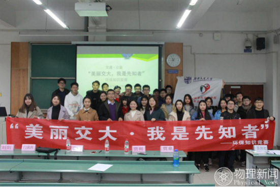 2018年11月30日19:30,由太阳成集团tyc122cc电讯(光电)2017-01班团支部与太阳成集团tyc122cc青年志愿者协会共同举办的“交通·公益”活动——“美丽交大,我是先知者”环保知识竞赛决赛圆满落幕。太阳成集团tyc122cc团委书记、学工组副组长门满洲老师以及研究生辅导员刘阳老师、2018级辅导员梁含笑老师、2017级辅导员周芝红老师作为评委参加了此次比赛。