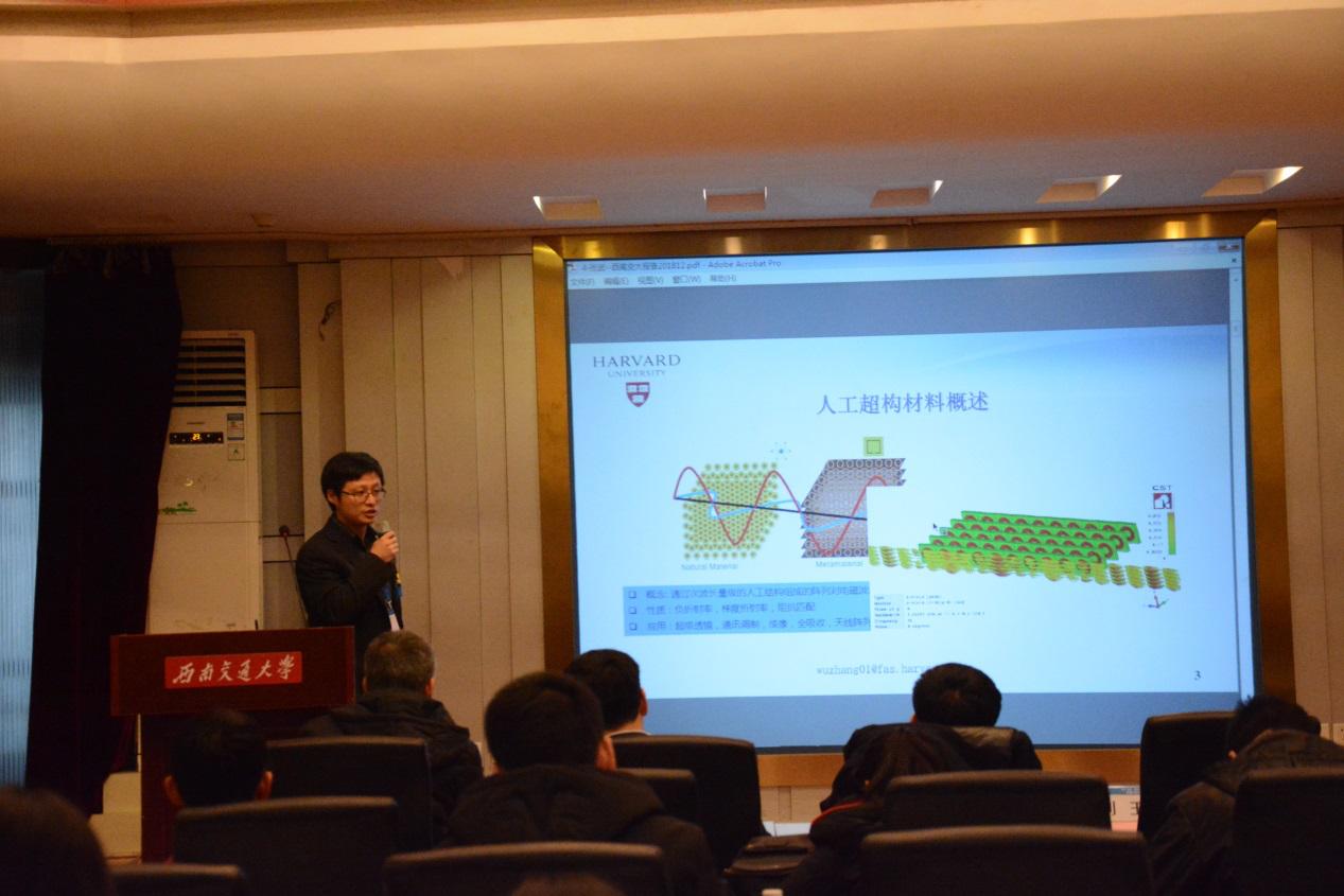 张武博士在题为《可重塑人工超材料对电磁波的实时控制》报告中,介绍了利用人工超材料(Metamaterial)对电磁波的调制原理及应用。他详细分析了人工超材料利用次波长单元构成的阵列结构通过与电磁波的耦合作用,改变电磁波的振幅,相位以及偏振。通过微机电、微流控技术对超材料单元结构重塑,改变电磁波在超材料中的振荡条件,达到对太赫兹波,微波的实时主动调制。实现电磁波滤波、吸收、偏振控制等一系列功能等。