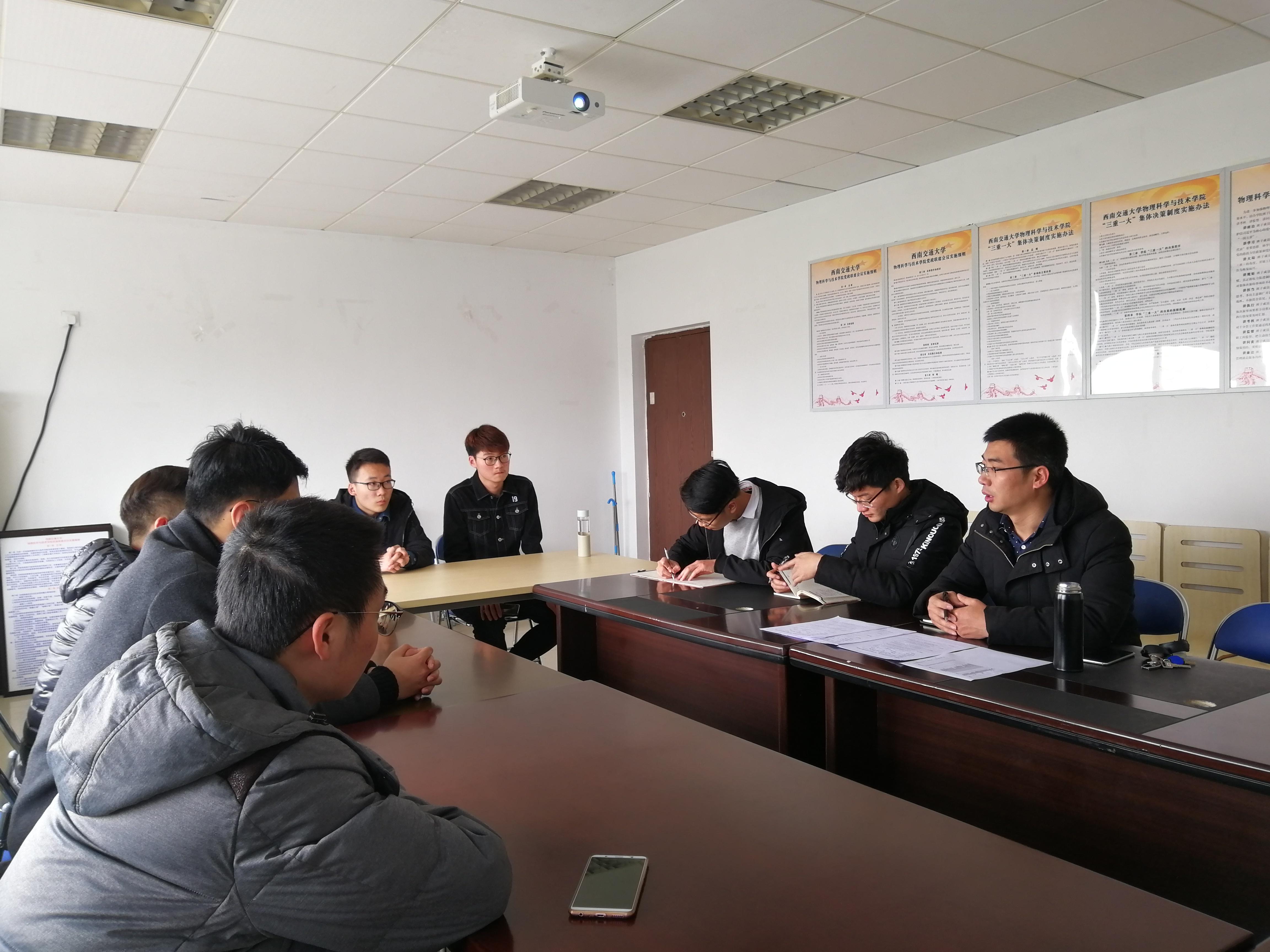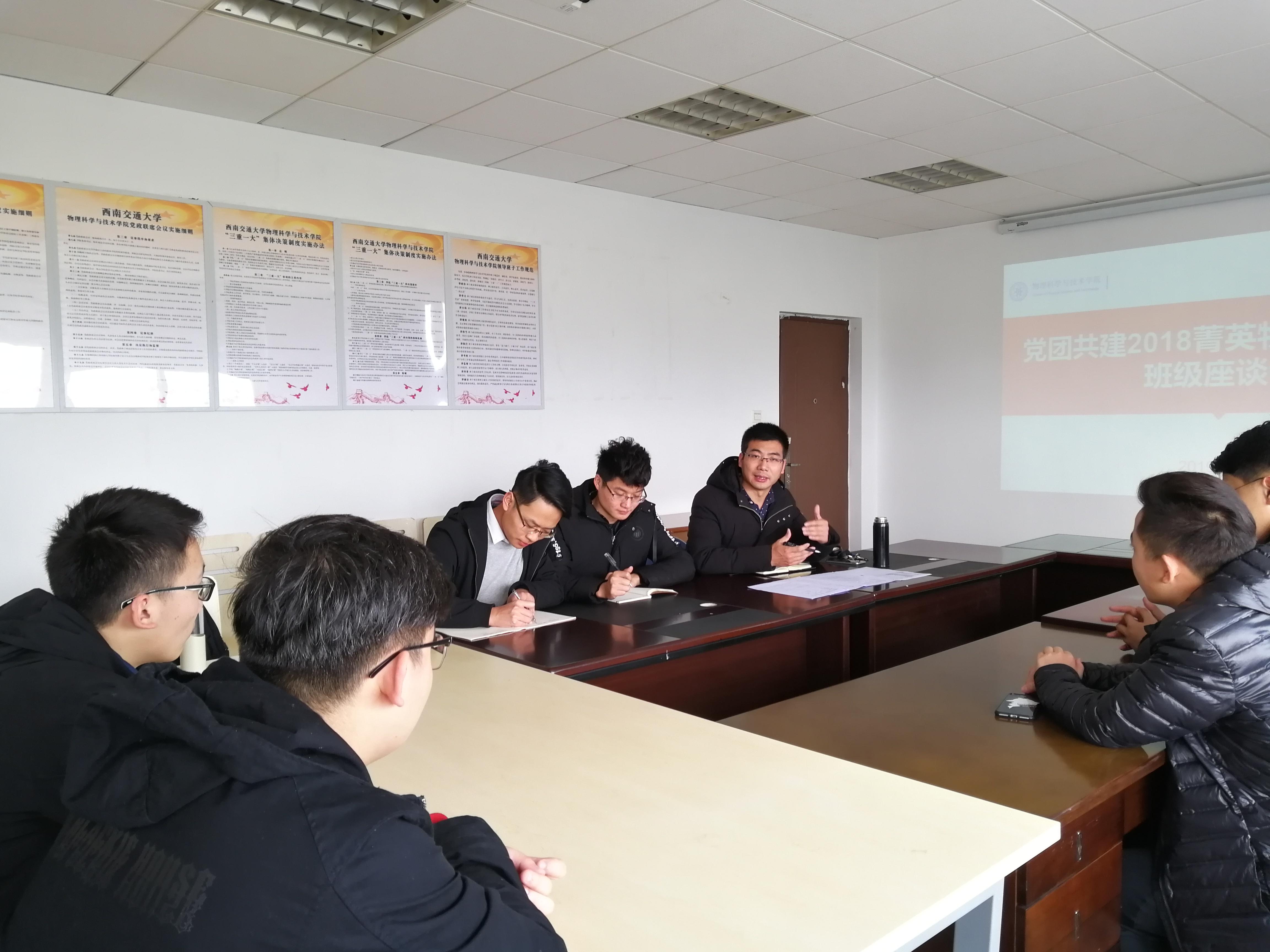 2019年3月5日下午1点15分,太阳成集团tyc122cc本科应用物理党支部正式党员同2018级应用物理各班班委在学院会议室X5527召开“党团共建2018菁英物理班级计划班级座谈会”。本次座谈会的主要目的是通过发挥党组织的先进带头作用,对新生的班级建设、班级发展、学习等方面进行指导,应物党支部书记门满洲同志担任此次座谈会的主讲人。