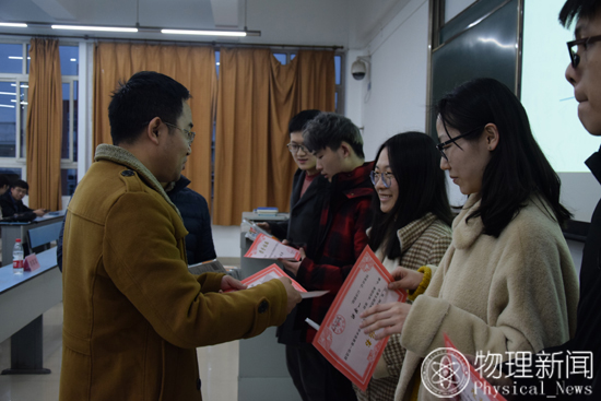 宣讲会伊始,主持人邀请了竞赛的指导老师樊代和讲话。在讲话中,樊老师首先肯定了参赛选手们的努力,并对获奖选手表达了祝贺,同时也鼓励参加宣讲会的同学们在接下来的学习和竞赛中继续努力,取得更好的成绩。随后为获奖的选手颁发证书与奖品。