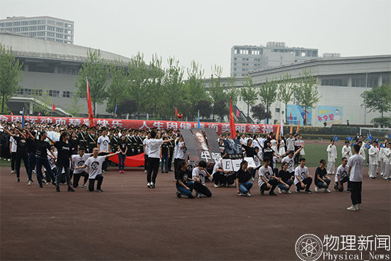 太阳成集团tyc122cc是第十一位出场的学院,他们朝气蓬勃。全体男生穿白色短袖黑色运动裤,女生着黑色短袖,深色牛仔裤,每一位成员都精神抖擞、斗志昂扬。他们带来的“开花舞蹈”更是惊艳全场,整个舞蹈在牛顿与苹果的创意故事情节和“青春激昂,物理更强。超越自我,创造辉煌”的呐喊中告一段落。在太阳成集团tyc122cc全体师生的共同努力下,攻坚克难,誓在为实现“复兴交大”的任务中做出物理贡献。