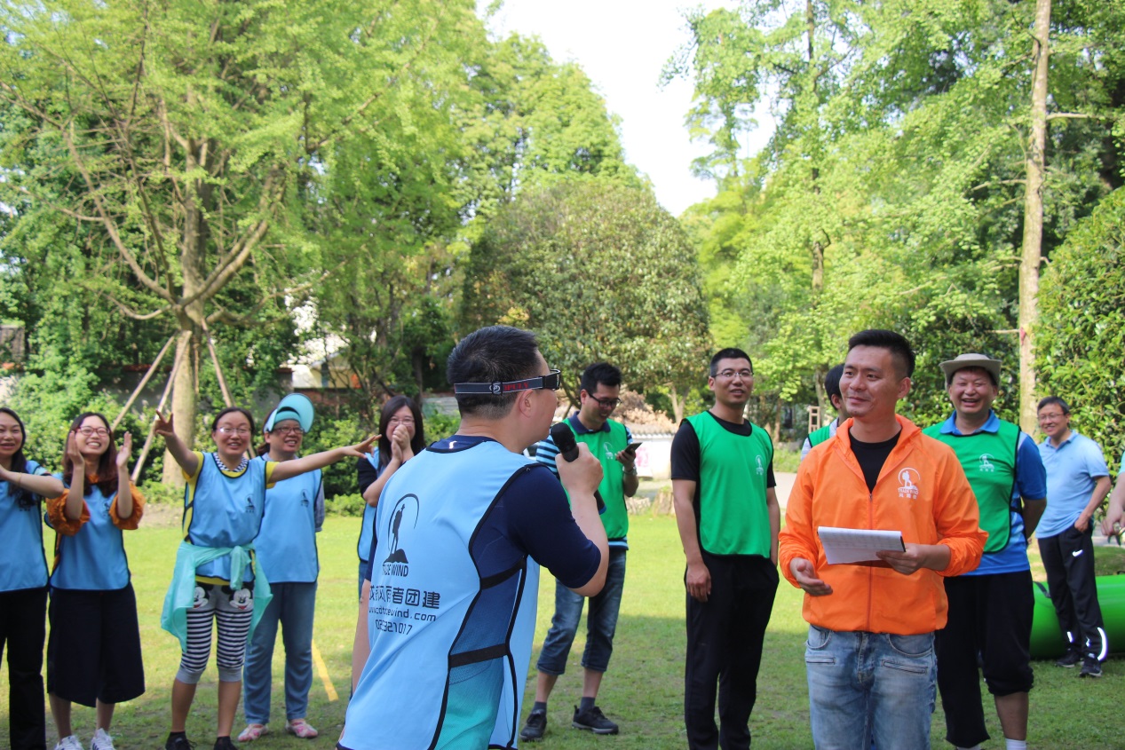 活动伊始,在素质拓展教练的组织下开展了热身运动,随即将教师们分为红、绿、蓝3个不同的团队,经各队队员讨论与设计,红队取名“亮子队”、蓝队取名“蓝精灵队”、绿队取名“绿巨人队”,并进行了四场别开生面的团队间友谊竞赛。