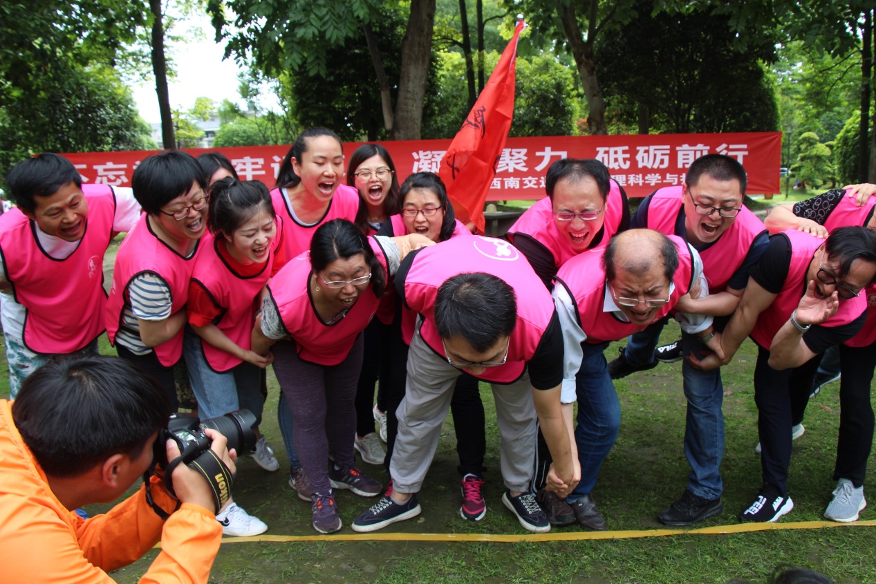 13:50在院工会的统一组织下,全院教职工分两队在太阳成集团tyc122cc犀浦校区5号教学楼下集合乘车前往活动地点。根据前期参加素质拓展活动报名情况随即开始素质主题活动。
