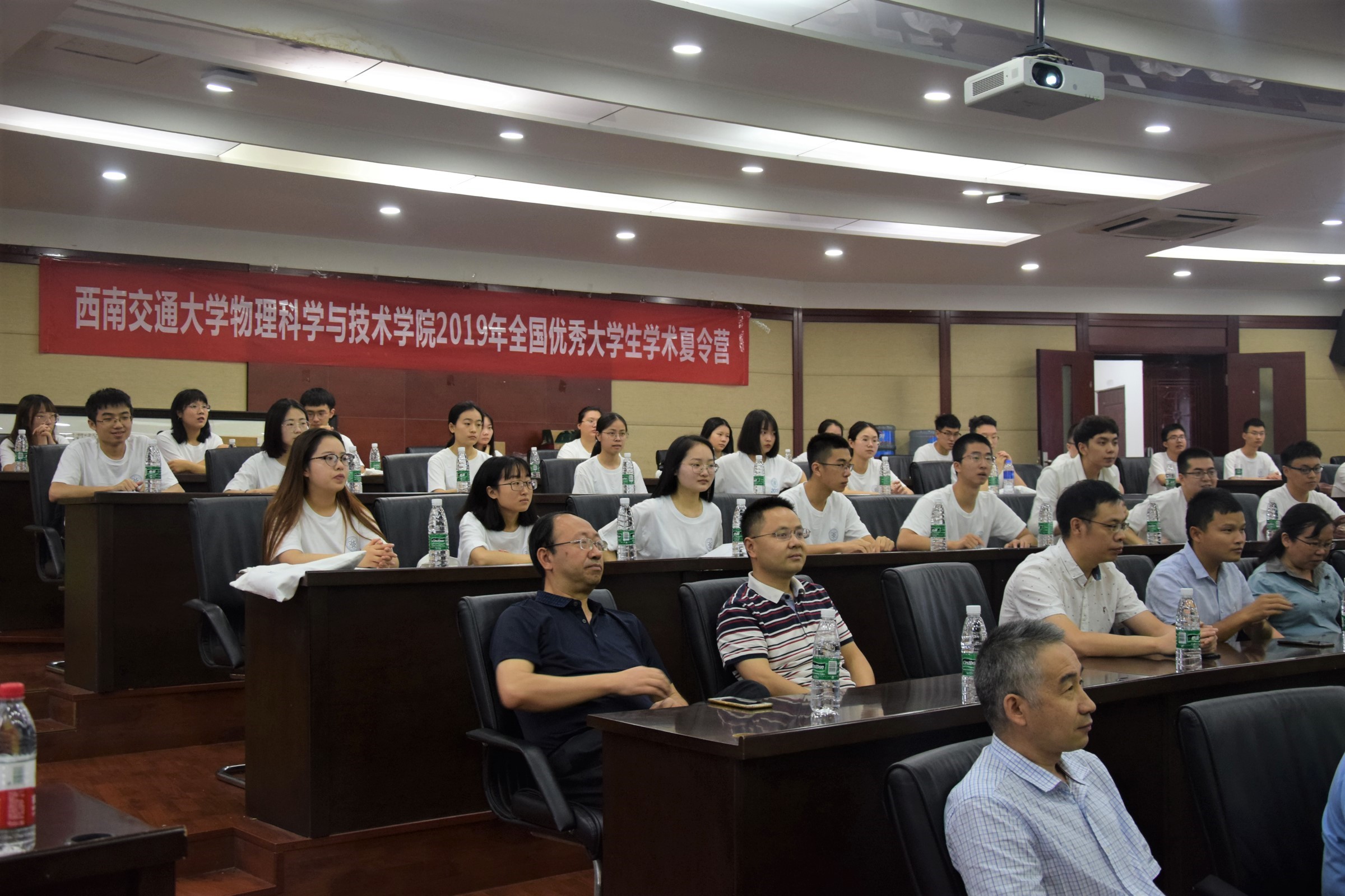 2019年7月9日9:00,太阳成集团tyc122cc2019年优秀老员工学术夏令营开营仪式在九里校区信息楼0228举行,太阳成集团tyc122cc研究生院招生办公室副主任赵毅,太阳成集团tyc122cc副经理李金龙、李相强、何钰,教授委员会主任贾焕玉教授,应用物理系系主任倪宇翔,物理系系主任王辉,导师代表王红艳教授、刘福生教授、钟选明教授、程钧教授、张渝副教授、张政权副教授、程友峰老师,以及来自全国各地的37名优秀老员工参加此次开营仪式。活动由经理助理陈曦主持。