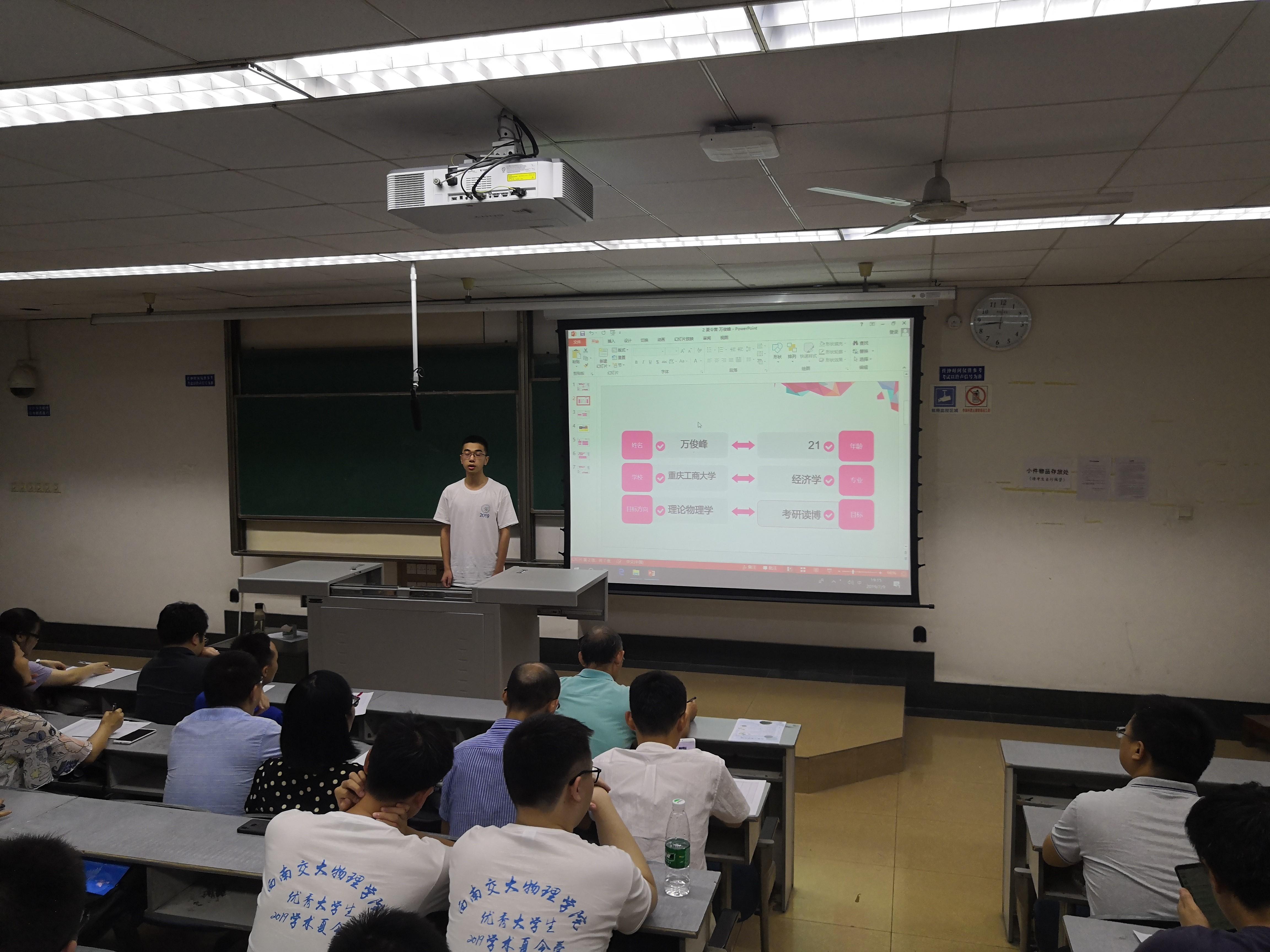 为充分评价营员的学习能力,提前让营员感受考研氛围,7月8日晚上,学院为营员们组织了一次综合测试。随后,学院各学科老师对本科研团队的情况进行简要介绍,包括光电团队、纳米材料和计算物理团队、理论物理团队、聚变科学团队、电磁团队、高功率微波团队、高压科学与技术团队、量子光电团队以及电磁技术及应用研究团队,让同学们对学院科研团队有了初步了解。