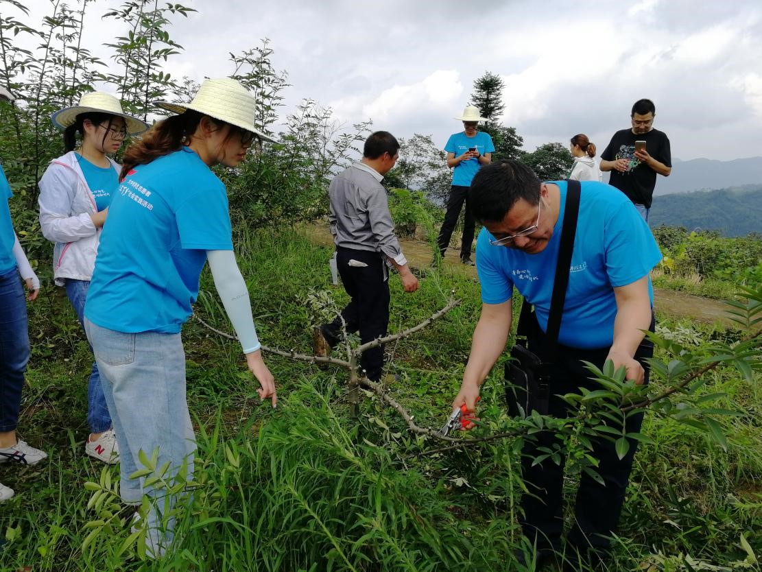 下午,队员们前往藤椒种植基地,徒步经过半个多小时的山路,团队到达目的地,与农民一起采摘藤椒。通过与藤椒种植合作社主任张加军的交流,队员们了解到目前村中藤椒的采摘完全依靠人力,耗时耗力。下午的采摘让队员们的衣裳渐渐被汗水浸湿。