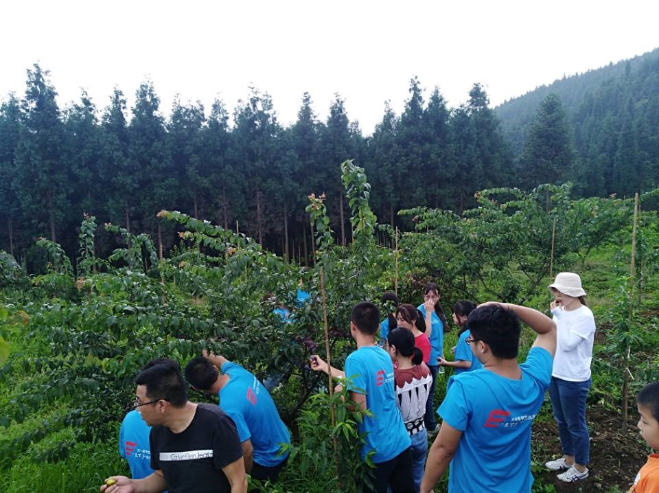 之后,团队上山来到黄桃与李子混合种植基地,通过与果园的负责人交流得知,该基地之前用于经济效益较低的玉米种植,之后通过对此区域土壤成分的分析决定将其转变为果树混合种植地。