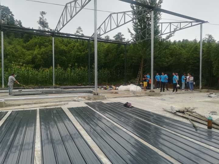 7月17日上午9点,实践队成员们攀爬近20分钟泥泞的山路后,来到正在建设中的牛尾笋加工厂。据双凤村扶贫干部陈君老师介绍,此加工厂将在本月月末建成,厂中将引进自动化设备用来完成村中牛尾笋及果干的加工。