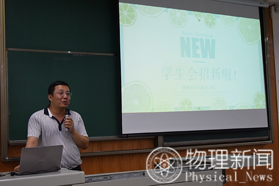 然后宣讲的是菁华物理新闻中心。在精彩的开场视频结束后,张磊主任上台介绍学院的官方宣传媒体——菁华物理新闻中心的部门组成及部门文化,接下来,记者团、摄影部、宣传部、媒体中心的部长们依次上台介绍了自己以及本部门主要负责的特色活动,并希望每位对新闻中心感兴趣的新生积极加入。