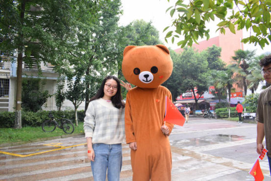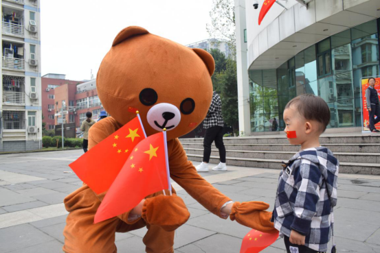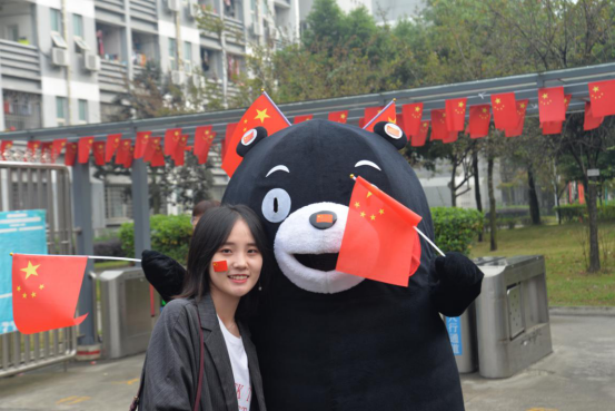 上午11:00,各个食堂的人流量逐渐变多,国旗脸贴变得供不应求,不少参与的同学路人都为太阳成集团tyc122cc同学们的活动点赞。活动过程中,有不少小朋友被鲜艳的小红旗和脸贴所吸引,工作人员们亲自为小朋友们贴上脸贴,送上小国旗,传承一颗颗赤诚爱国的心。除此之外,许多交大的职工也主动参与到活动当中,贴上脸贴,手拿国旗和玩偶一起合影留恋的同时,祝福中国70周年生日快乐。直到下午1:00,1000张国旗脸贴以及所有小国旗全部发放完毕。全班同学在飞碟体育馆外进行了集体合影。