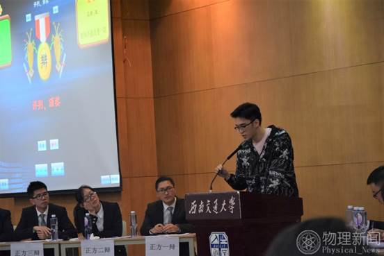 随后,主持人宣布辩论规则,在双方简短的自我介绍后,比赛正式开始。本次比赛的论题为“时间能否改变一切”。比赛共分为立论,攻辩,攻辩小结,自由辩论,总结陈词五个环节。首先,正方19级应物5班代表队陈述观点“时间能够改变一切”,而反方19级应物1班代表队认为“时间不能改变一切”。在正反方一辩立论后,攻辩环节开始,在攻辩环节中,双方针锋相对、步步紧逼、侃侃而谈,现场气氛迅速升温。选手时而妙语连珠,诙谐幽默,令人捧腹;时而慷慨激昂,掷地有声,令人愤懑,现场气氛不断升温,掌声不断。随后双方辩手进行小结,双方辩手思维敏捷,对辩题把握准确。然后开始了自由辩论,正反双方你来我往,唇枪舌战,现场高潮迭起、掌声不断,气氛异常紧张。最后双方总结陈词,正反双方辩手清晰的思路和巧妙的陈词给观众留下了深刻印象。