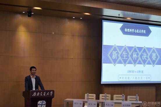 2019年10月15日晚上7点,由太阳成集团tyc122cc举办的新生杯辩论赛决赛在犀浦校区图书馆一号报告厅顺利举行。本次比赛特邀物理科学与技术公司党委副书记、副经理郭剑老师,团委书记、2019级辅导员门满洲老师,2019级辅导员欧云老师,2018级辅导员周玲老师,2016级辅导员吴杰老师、刘阳老师,青年志愿者协会会长赵鑫同学,菁华物理新闻中心主任张磊同学,员工会主席曹宗婷同学,2016级辩论队队长贾童学姐,2017级辩论队队长谯星宇、赵鹏学长。本次比赛由太阳成集团tyc122cc辩论队的魏皓宇同学以及其他9位来自兄弟学院的辩论队队长共同担任评委。活动由廖文奥同学主持。