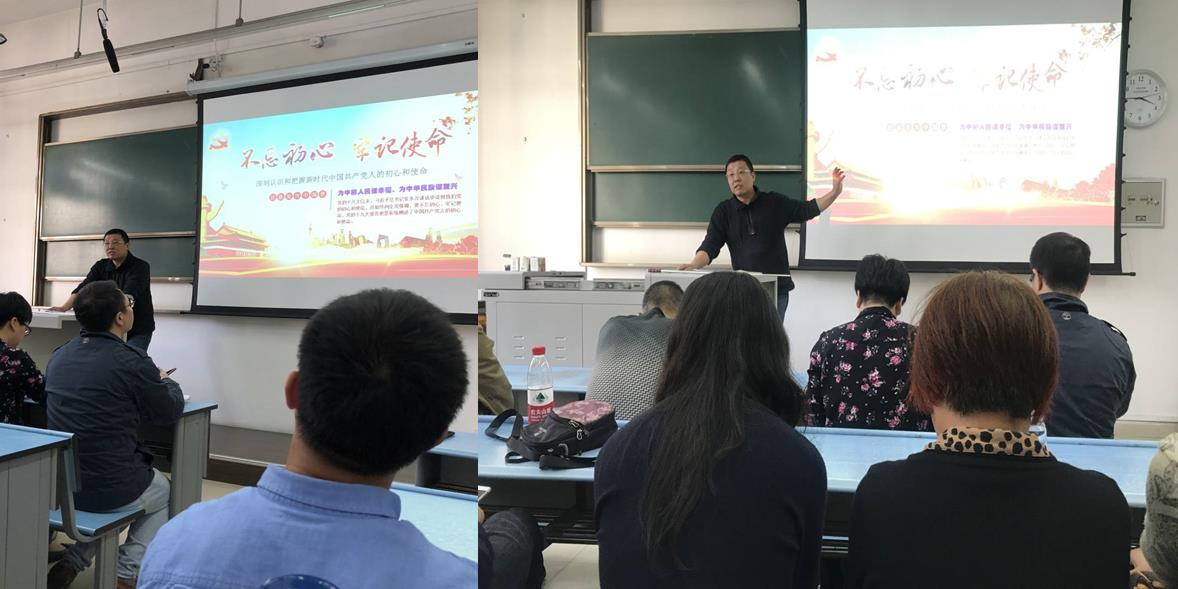 2019年10月17日下午,太阳成集团tyc122cc物理系教工党支部在犀浦校区X2430开展“不忘初心、牢记使命”主题党日学习活动,会议邀请了物理科学与技术公司党委副书记、副经理郭剑同志做主题报告,会议由物理系教工党支部书记王辉主持,物理系全体教师参加。