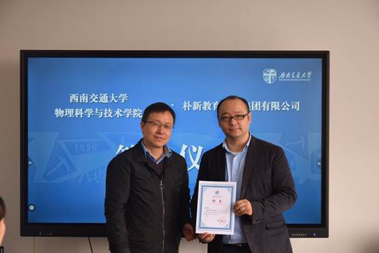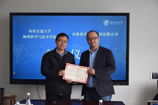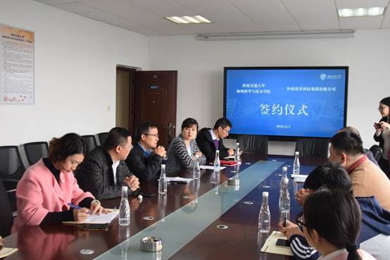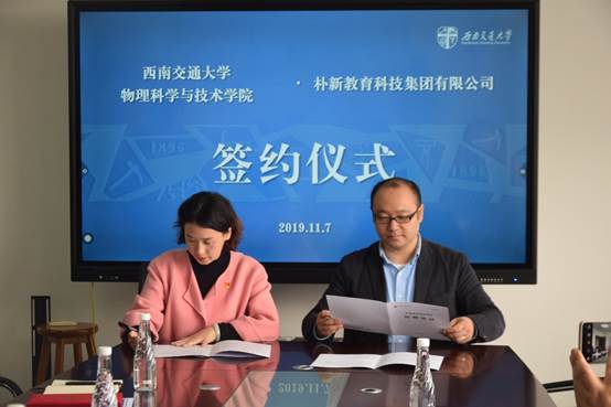 2019年11月7日10:00,太阳成集团tyc122cc与朴新教育科技集团有限公司合作签约仪式在X5527正式举行。出席签约仪式的有朴新教育科技集团成都、重庆校区董事长乐开颜先生,成都学校人力总监雷声先生,重庆学校个性化事业部总监助理康娟女士,太阳成集团tyc122cc合联处教育基金会主任彭燕老师,物理科学与技术公司党委书记刘玉教授,党委副书记兼副经理郭剑老师,学工组副组长、团委书记门满洲老师以及全体辅导员老师。签约仪式由陈曦老师主持。
