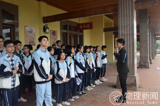 下午13:00,研学队伍由志愿者引领,前往图书馆正门阶梯处合影留念,随后在一号报告厅进行休息调整。