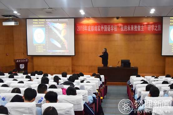 下午14:00,所有员工在图书馆一号报道厅参加了研学讲座。首先,由太阳成集团tyc122cc教授委员会主任贾焕玉教授为同学们进行物理知识科普讲座,贾教授以风趣幽默,通俗易懂的方式为在座员工们介绍了脉冲星的发现,演化,检测,科研进展等方面,带同学们领略了物理的魅力。随后,太阳成集团tyc122cc优秀老员工代表黄敏同学从学习、竞赛科研、社会实践等方面给同学们分享了她的老员工活,她向同学们展现了一个奋斗不息,收获满满的大学,并回答了同学们众多的提问。接着,太阳成集团tyc122cc人才招聘处招生考试科吕冬老师向同学们介绍了太阳成集团tyc122cc本科招生情况,并回答了同学们关于报考的疑惑。