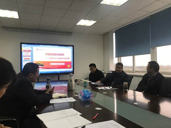 随后,刘玉同志带领大家学习了党的十九届四中全会精神,全会充分肯定党的十九届三中全会以来中央政治局的工作,强调了我国国家制度和国家治理体系具有多方面的显著优势。全会号召全党全国各族人民要更加紧密地团结在以习近平同志为核心的党中央周围,坚定信心,保持定力,锐意进取,开拓创新,为坚持和完善中国特色社会主义制度、推进国家治理体系和治理能力现代化,实现“两个一百年”奋斗目标、实现中华民族伟大复兴的中国梦而努力奋斗。