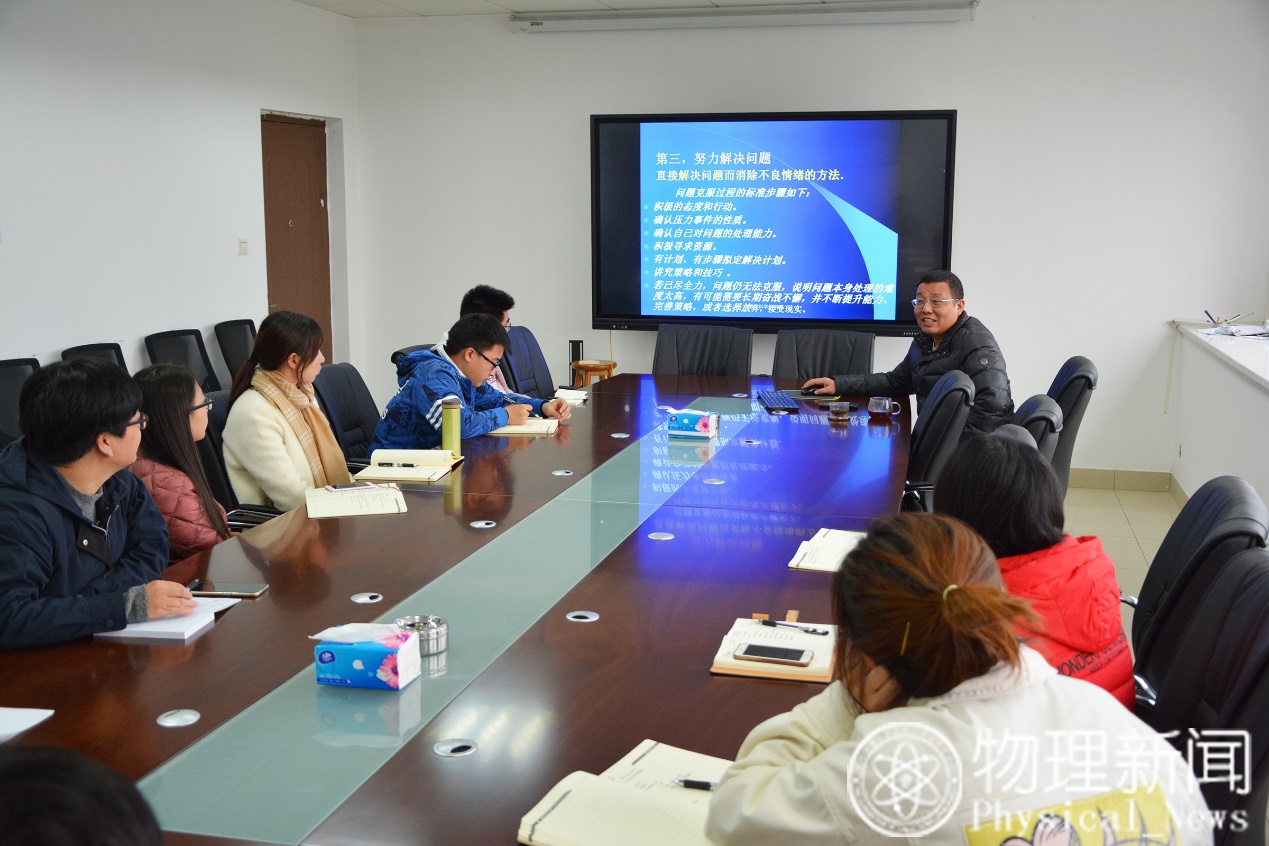2019年11月22日15:30,委在X5527开展了党支部书记“压力管理和心理修炼”培训。本次会议由郭剑副书记主讲,学院各党支部书记以及各年级辅导员参加了本次培训。