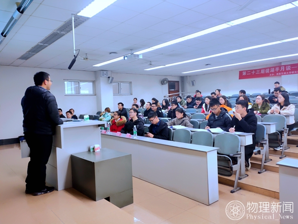 活动一开始,刘其军老师首先介绍了物理学的发展和历史,同时指出公司物理学专业在全国排名上还有较大发展空间,还需要持续的努力。随后,他引出“担当”的主题,他认为现阶段研究生应该当仁不让,勇于承担,生命在于责任,想要在科研上有所建树,必须付出时间,不断积累经验,同时找到合适的方法。