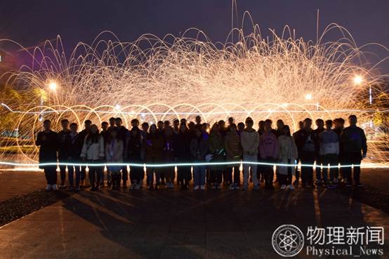 在交大宁静的夜晚,菁华物理新闻中心在空中挥洒着火花,用相机记录着这美丽的时刻。
