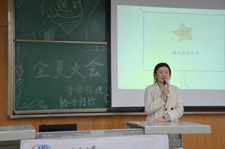 首先,刘阳老师为大会致辞,她表示非常开心大家能够因为志愿的初心一同坐在这里,从刚入学到现在已经一个学期过去了,我们一起组织过一系列大大小小的志愿活动,也一起开开心心地聚会、聚餐。物理青协就如同一个家庭一般温暖,大家每一个人都是不可或缺的一份子,也希望每一个人都能够坚守初心,不忘志愿使命。