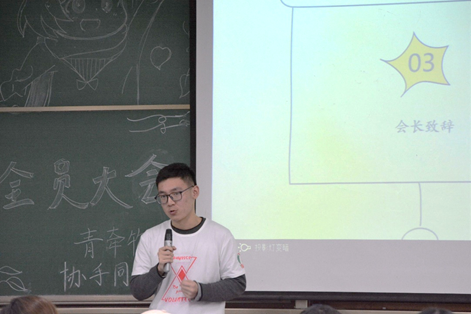 然后,物理青协会长王瑞枫发表讲话,他回忆了过去作为部员和部长的志愿经历,总结了许多经验,并对部员们做出了美好的寄语和祝愿。