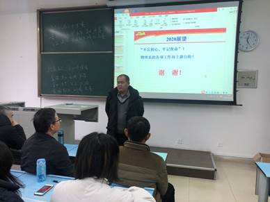 系领导班子年终述职和测评大会由各系独立开展,系主任、副系主任和支部书记面向全系老师做2019年年终述职报告,全系老师为系班子成员测评。电子信息科学与技术系系主任张渝、副系主任冯菊、王勇、支部书记张健穹,应用物理系系主任倪宇翔、副系主任朱宏娜、周涛、黄捷和支部书记刘其军,物理系主任兼党支部书记王辉、副系主任魏云、谢东、樊代和、沈军峰和支部副书记朱浩均从德、能、勤、绩、廉、担当负责等方面作了述职报告,包括取得的成绩,工作开展中的不足以及2020年工作设想。