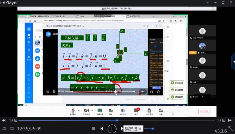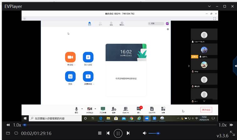 图1 物理系利用腾讯会议开展网络教研活动 谢东老师主持会议,并利用腾讯会议演示如何开展直播上课