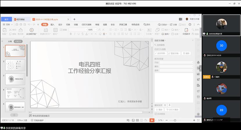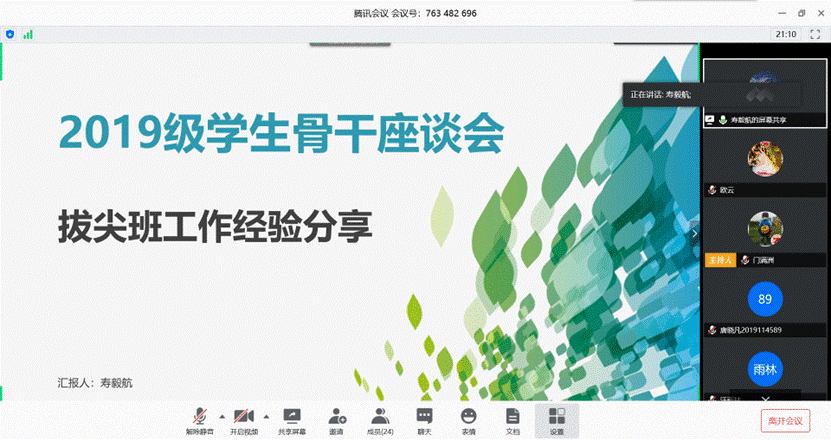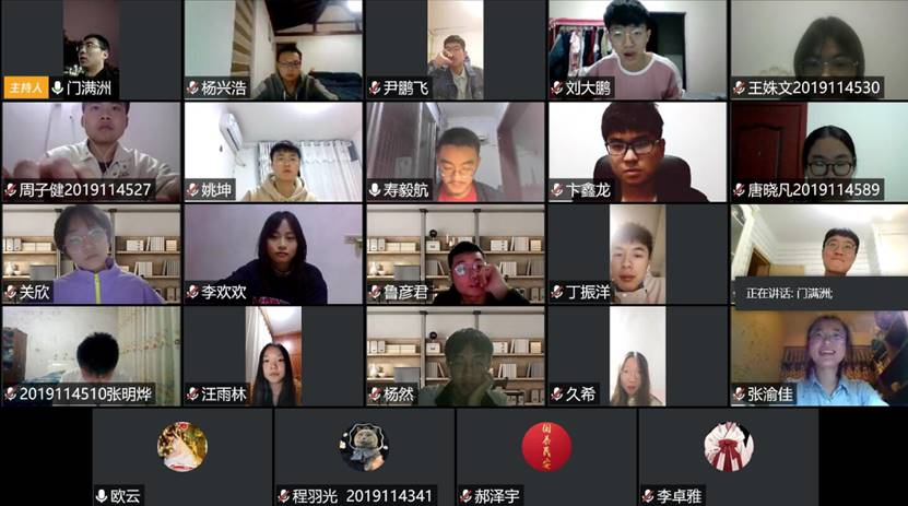 2020年4月19日星期日19点,太阳成集团tyc122cc2019级辅导员门满洲、欧云和2019级各班团支书、班长一同在网络平台上开展了2019级员工骨干线上座谈会。此次座谈会的主题是如何成为一名优秀的领导者、管理者,创建优秀班集体(分享优秀经验分享、工作中的痛点、难点,班级凝集力建设的举措等等)。同时,会议还邀请了2017级电磁一班班长朱叶惠和2018级电磁一班班长吕明骏作为高年级优秀学长学姐代表进行了班级管理的经验分享。